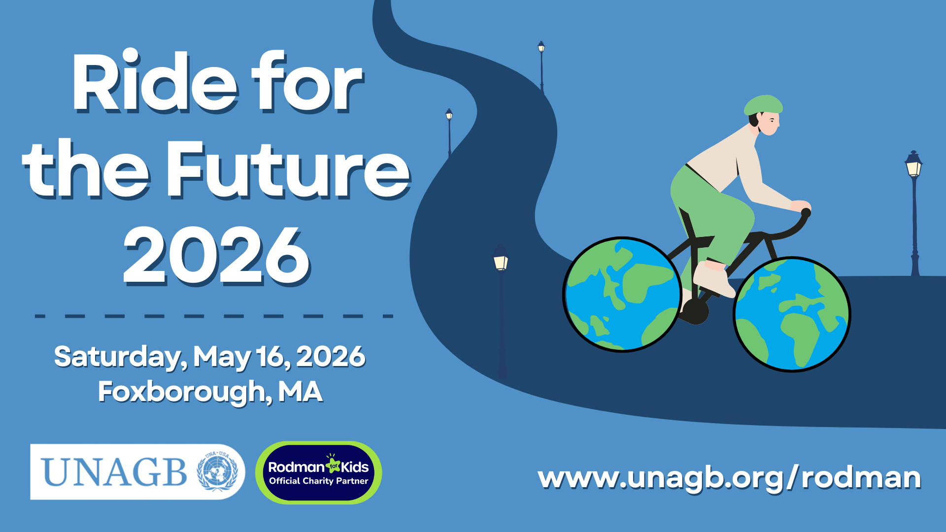 Ride for the Future is UNAGB’s new initiative in partnership with Rodman for Kids. Whether you join us in Foxboro on May 16th or participate virtually, 100% of donations will go directly back to UNAGB and are fully tax-deductible. Your support helps provide opportunities for youth to participate in Model UN programs, fostering skills like public speaking, collaboration, and global awareness.
