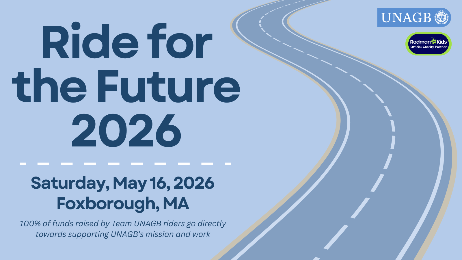 Ride for the Future is UNAGB’s new initiative in partnership with Rodman for Kids. Whether you join us in Foxboro on May 16th or participate virtually, 100% of donations will go directly back to UNAGB and are fully tax-deductible. Your support helps provide opportunities for youth to participate in Model UN programs, fostering skills like public speaking, collaboration, and global awareness.
